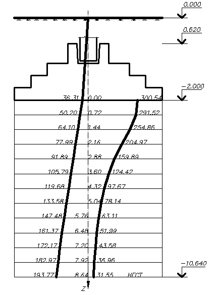 Проверяем выполнение условия S < Su . В нашем случае 3,70 см < 8 см, где Su =8см – предельное значение осадки. Условие выполнилось.