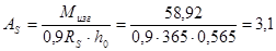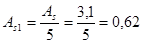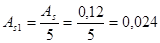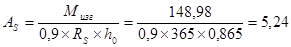 Из сортамента выбираем арматуру диаметром 9 мм с As1 = 0,636 см2 , тогда As = 5х0,636 = 3,18 см2
