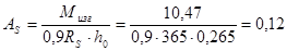 Из сортамента выбираем арматуру диаметром 12 мм с As1 = 1,313 см2 , тогда As = 5х1,313 = 6,565 см2 .
