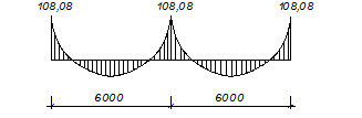 Ригель работает, как двухпролетная рама с жесткими узлами сопряжения. Находим изгибающие моменты: