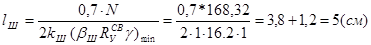 σш=N/4kш lш. < (βRyсвγyсв)minγ =3596/4*1,2*(60-2) = 12,9 < 15,05 (кН/см2).
