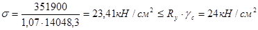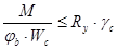 Проверка в месте уменьшенного сечения балки, где материал работает в упругой стадии:
