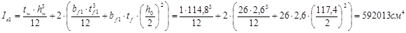 Определяем требуемый момент инерции уменьшенного сечения поясов: