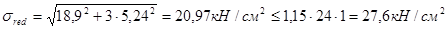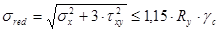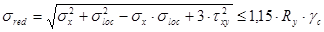Приведенные напряжения, в этом случае, проверяются с учетом местных напряжений: