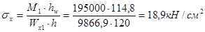Проверка в середине балки, где материал работает в упруго-пластической стадии