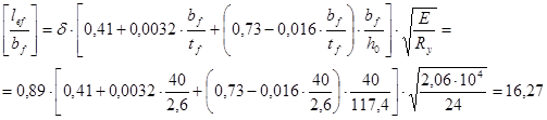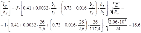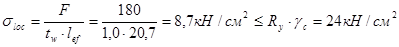 необходима проверка местных напряжений в сечениях, не укрепленных поперечными ребрами жесткости: