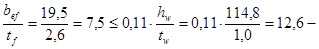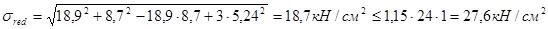 Проверка совместного действия нормальных и касательных напряжений (приведенных напряжений) производится в месте изменения сечения на уровне поясных швов: