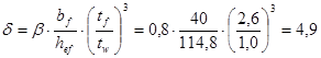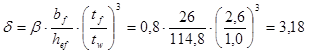- коэффициент, принимаемый для сварных балок в зависимости от значения коэффициента