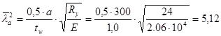 - коэффициент, принимаемый для сварных балок в зависимости от значения отношения