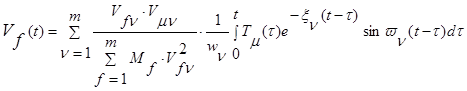 Для решения уравнения (1) используется метод разложения по главным формам колебаний, согласно которому смещение расчетных точек представляется в виде суммарных амплитудных значений смещений по главным формам колебания.