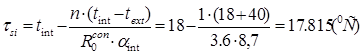 - температура внутренней поверхности по металлическому тепловому включению определяется по формуле: