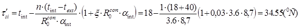 - температура внутренней поверхности без теплопроводного включения определяется по формуле: