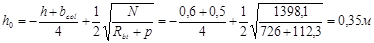 Определяем рабочую высоту фундамента из условия прочности на продавливание по формуле: