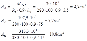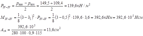Арматура, укладываемая параллельно меньшей стороне фундамента, определяется по изгибаемому моменту в сечении IV-IV: