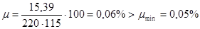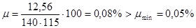 Принимаем 10 ш14 А-ІІ с Аs = 15,39 см2. Процент армирования