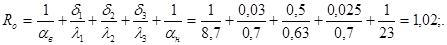 1,3,5, - известковопесчаный раствор δ1=δ3=0,03м δ5=0,025м λ=0.7Вт/моС