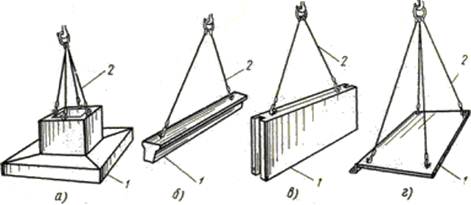 Если в железобетонных элементах нет монтажных петель, элементы стропуют захватами через отверстия в конструкции и подхватом снизу конструкции за ее выступающие части, а также фрикционными захватами.