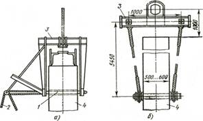 а— с дистанционным управлением, б — без дистанционного управления; 1 — выдвижной штырь, 2 — канат, 3 — траверса, 4 — колонна