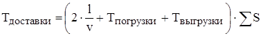 Время на доставку всего объема изделий одного наименования определено по формуле: