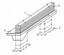 Фундамент – подземная часть здания, которая воспринимает нагрузку от всего здания и передает его на основание. Глубина заложения фундаментных подколонников торгового центра – 4,1. Данное здание имеет столбчатый фундамент, который состоит из железобетонных фундаментных балок перекрывающие столбы. Расстояние между осями фундаментных столбов 6 м. Под фундамент выполняют песчаную подготовку толщиной 0,5…0,6 м. Если при этом необходимо утеплить пристенную часть пола, подсыпку выполняют из шлака или керамзита. Фундамент изображен на рисунке 1.2, где 1 - железобетонная фундаментная балка; 2 - подсыпка; 3 - отмостка; 4 - гидроизоляция.