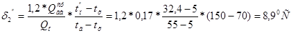 τ2’= τ2,о’- δ2’=70-15,5=54,50С