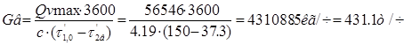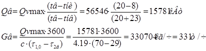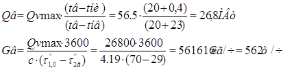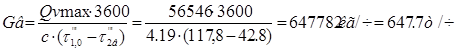Gvmax = 3,6·Qvmax/(c·(τ1-τ2)), кг/ч