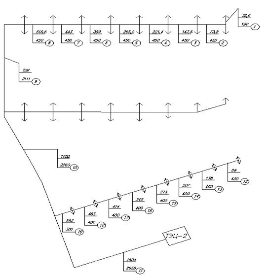 Трасса тепловых сетей выбирается в соответствии с требованиями /1/ и наносится на генплане района города от источника тепла до ввода в кварталы. Схема тепловой сети – тупиковая. Сети прокладываются по наиболее теплоплотным районам.