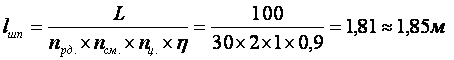 число рабочих смен в сутки nсм.= 2; nц. = 1; КИШ η = 0,9; L = 100(месячный план проходки выработки).