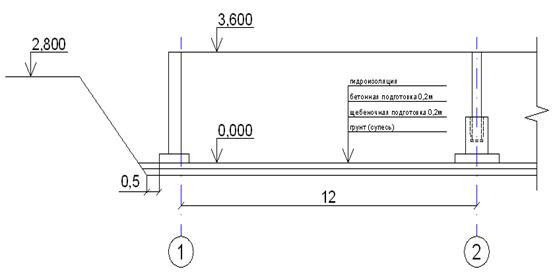 Рис. 3.1.1. Планировочное и конструктивное решение подземной части здания