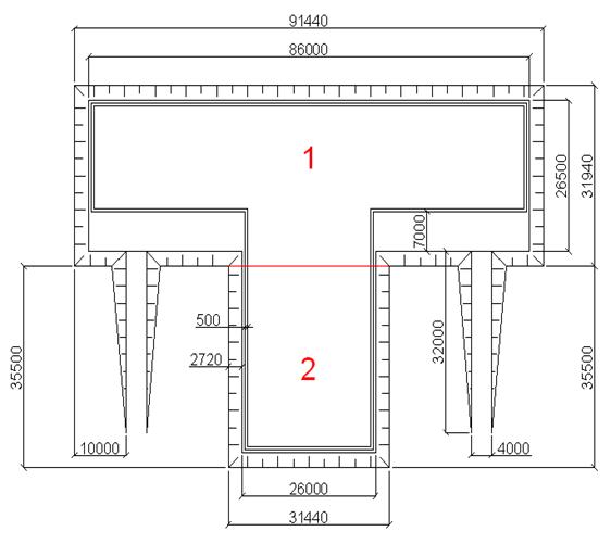 Размеры котлована в плане показаны на рис. 3.2.1. (размеры в мм).