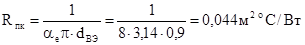 2) Термическое сопротивление поверхности изоляционного слоя, м2оС/Вт, определяемое по формуле: