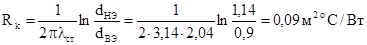 6) термическое сопротивление слоя изоляции, для подающего и обратного трубопровода: