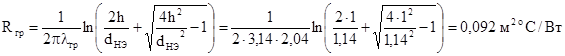 lгр – теплопроводность грунта, принято lгр=2 Вт/(м оС);