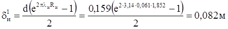 где lи - теплопроводность теплоизоляционного слоя, определяемая по [8], Вт/(м°С), маты из стеклянного штапельного волокна ГОСТ 10499-78 - l1=0,061 Вт/м°С, l2=0,055 Вт/м°С;
