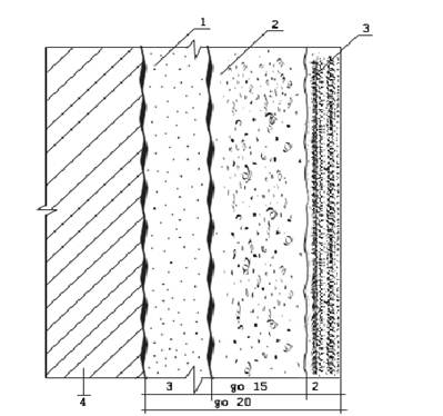 1-обрызг; 2-грунт; 3-накрывка; 4-кирпичная стена