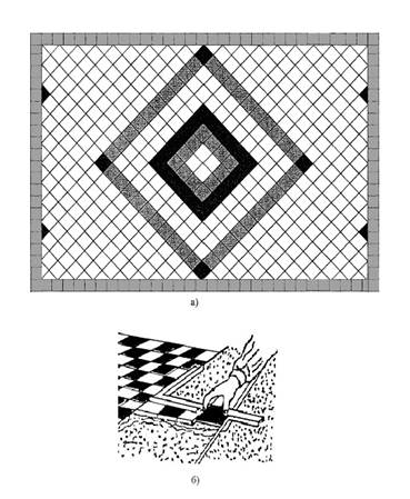 а) - укладка плиток по диагонали; б) – настилка плиток в шахматном порядке