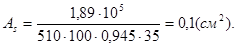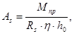 Требуемая площадь рабочей арматуры на 1 пог. м. длины полки:
