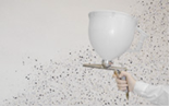 При помощи специального флокового пистолета на расстоянии 40-60 см от стены нанесите флоки на еще влажную базу до максимального насыщения (рис.5).