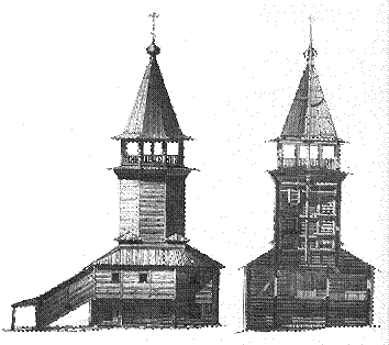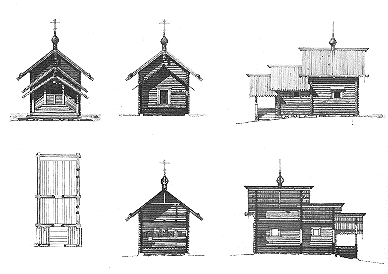 При всей однотипности кижских часовен диапазон их архитектурно-композиционных различий широк. В одной из них западный придел подобен небольшому тамбуру, как в Подъельниках, в другой, напротив, он развит до масштаба трапезной, намного превышающей площадь самой часовни, как сделано в Васильеве. В этой часовне колокольня имеет второстепенный характер, а в Кавгоре или в Усть-Яндоме она перерастает в основную архитектурную форму здания, подчиняя себе всю его композицию и определяя его художественный образ.