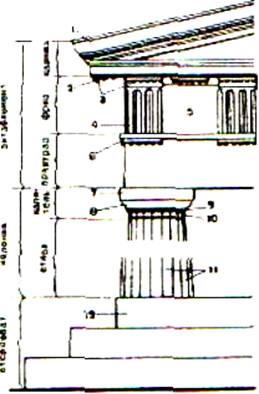 Уже в архаическую пору в греческой архитектуре сложились три ордера, которые признаны классическими: дорический, ионический и коринфский, — названные по наименованию областей, где они создавались. Основная конструктивная схема всех ордеров — стоечно-балочная конструкция, которая состоит не менее чем из пары стоек (колонн) и опирающейся на них балки — архитрава. В простейшем варианте этой конструктивной схемы колонны — несущая конструкция, а архитрав — несомая. Но единая конструктивная схема ни в коей мере не ограничивала художественной свободы архитектора. Именно в художественной трактовке конструктивной схемы проявились отличительные особенности ордеров. Но прежде чем попытаться раскрыть отличительные особенности ордеров, познакомимся с их деталировкой, развивающейся снизу вверх.