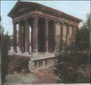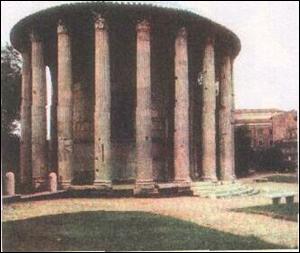 Круглый храм Сивиллы (или Весты) в Тиволи (I век до н.э.) под Римом, окружён коринфскими колоннами. Фриз украшен рельефами с изображением традиционного римского мотива – бычьих черепов, “букраниев”, с которых свисают тяжёлые гирлянды. Ордер в таких храмах отличался жёсткостью рисунка и суховатостью: колонны утратили присущую им в Греции пластичность. Греческий круглый периптер обычно имел ступенчатое основание и был рассчитан на круговое обозрение.