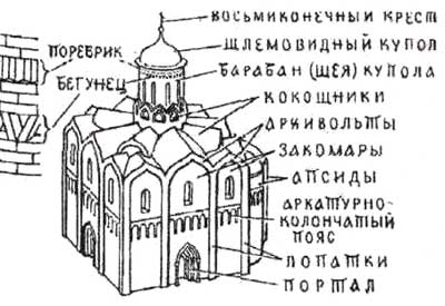 В основе строения традиционная крестово-купольная система с шестью почти квадратными пилонами, опорами, несущими крестовые и цилиндрические своды, но снаружи храм получил модный ренессансный наряд. Закомары отделены от плоскости стен венчающим карнизом, и таким образом превращены в декоративные кокошники, тимпаны кокошников украшены венецианскими раковинами. Лопатки превращены в пилястры с легкими капителями. Подчеркнутое главенство вертикальных линий придает зданию стройность.