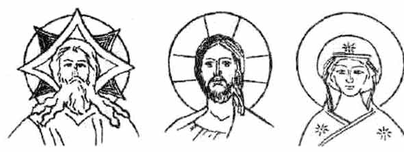Византийская иконография предписывает давать изображения Бога Саваофа — со звездчатым нимбом, Иисуса Христа — с крестчатым, святых — с круглым. |