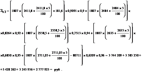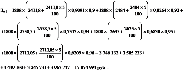 Если принять, по результатам анализа за прошлые года, что программа будет расти примерно на 3 % в год, а принятый расчетный период равен 5 годам, можно определить экономический эффект от внедрения мероприятий по совершенствованию: