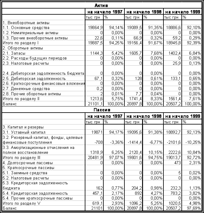 Структурный анализ пассива свидетельствует о том что в удельном весе баланса увеличилась сумма краткосрочных пассивов - с 2,93 % на 01.01.97 г. до 4,98 % на 01.01.99 г, что для поддержания адекватной финансовой устойчивости требует большего количества средств для покрытия этих займов.