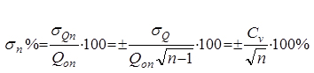 Для сравнения точности определения нормы стока рек различной водности пользуются относительным значением средней квадратической ошибки. Так, выражая σQ в процентах от Q0n получим среднюю, квадратическую ошибку нормы стока, вычисленную по ограниченному ряду n лет,