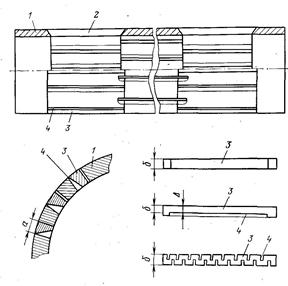 1 – труба; 2 – отверстия в трубе; 3 – вкладыши; 4 – щели во вкладыше