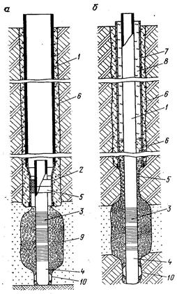 Для конструкции скважин, показанных на рис. 5, б, диаметры эксплуатационных колонн имеют величины 110 – 225 мм.