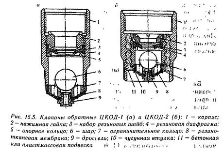 Для обсадных колонн используют клапаны ЦКОД-1 (рис. 15.5) диаметром 114—194 ими ЦКОД-2 диаметром 219—426 мм.