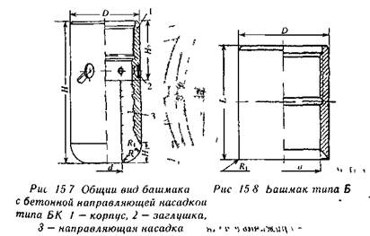 Для колонн больших диаметров применяются башмаки с бетонной насадкой (рис 158) Они состоят из корпуса с неразъемной насадкой, которая формируется в нем из смеси тампонажного